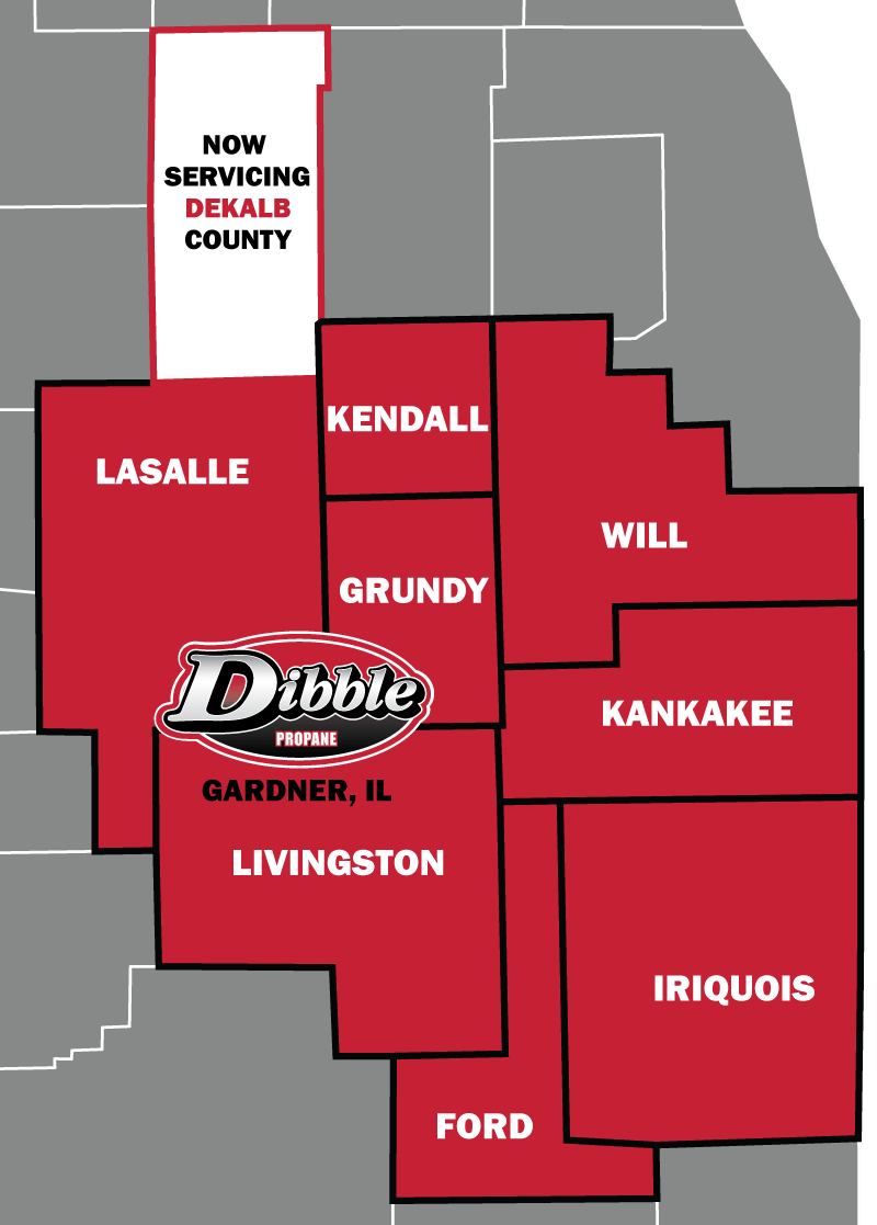 Dibble Propane currently provides LP service to over 2500 residential, commercial and agricultural customers in 8 counties. From complex tank and pier installations to filling the tank for your grill, our professionally trained team is readily available to service your propane needs. 815-237-2247
